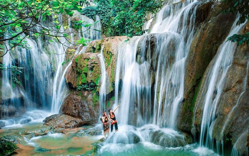 - Thác Dải Yếm – dải lụa trắng mềm mại buông mình giữa núi rừng xanh thẳm, gắn liền truyền thuyết cảm động về tình yêu và lòng dũng cảm của người con gái Thái. Âm thanh róc rách của dòng nước, hơi sương mát lành phả vào gương mặt, cùng khung cảnh nên thơ sẽ khiến tâm hồn bạn được gột rửa mọi mệt mỏi.